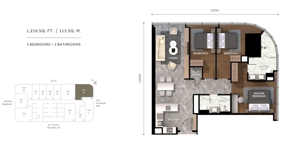Type J | 1,216 sq.ft. | 3BR